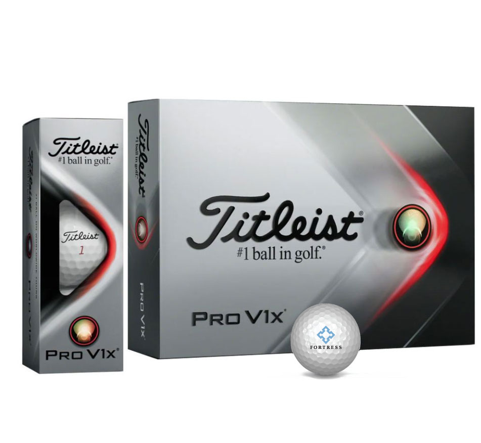 Pro V1x is the optimal premium performance choice for players looking for maximum distance, who need higher flight and more stopping power. It’s most frequently recommended for players with launch conditions that are naturally low in height and low in spin. Features your logo stamped on each ball. Three balls per sleeve. Four sleeves per box. One dozen balls per box.